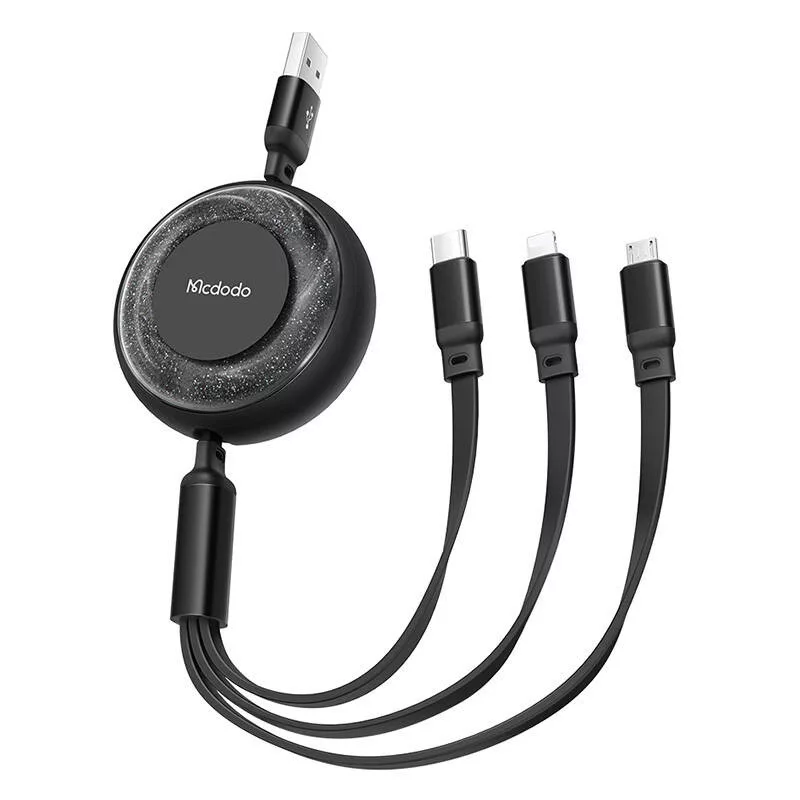 A Mcdodo CA-3730 kábel három interfészt (USB-C, Lightning, Micro USB) és 5 fokozatban állítható hosszúságot kínál. A 6A maximális áramerősséggel, 66W-os teljesítménnyel és a gyorstöltés támogatásával a kábel lehetővé teszi három eszköz egyidejű töltését és 480 Mbps sebességű adatátvitelt. Tartós anyagokból készült, így biztonságot és megbízhatóságot nyújt a mindennapi használat során.