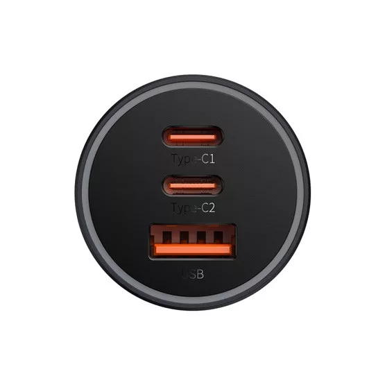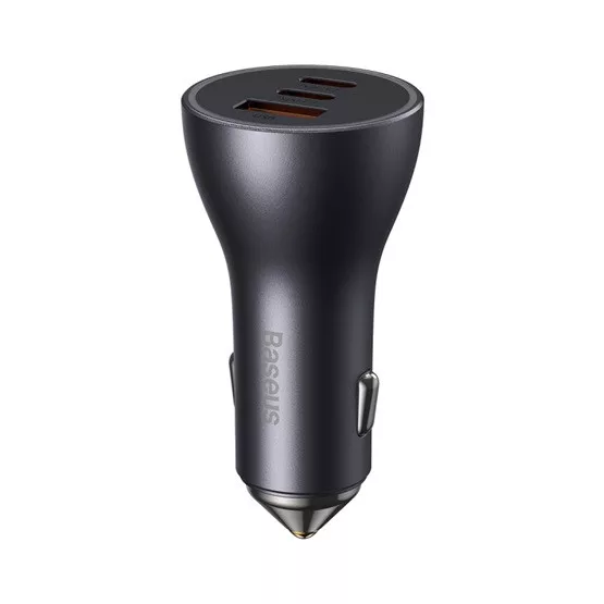 Baseus Golden Contactor Pro Triple autós gyorstöltő 65W, USB Type-A + 2×USB Type-C, szürke