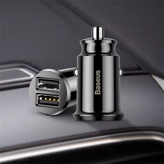 Baseus Grain autóstöltő 3,1 A, 2×USB Type-A, fekete
