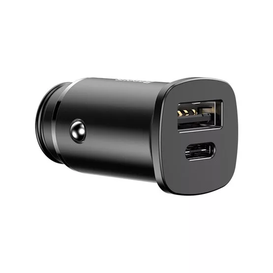 Baseus Square Metal PPS autós gyorstöltő 30W, USB Type-A + USB Type-C, fekete