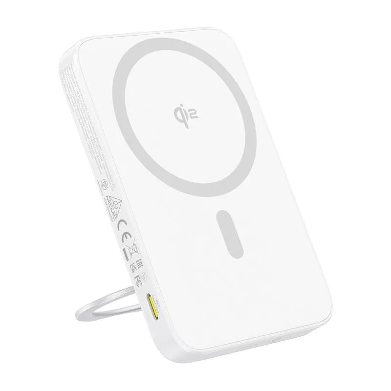 A Qi2 technológiának köszönhetően a powerbank akár 15 wattos teljesítményű vezeték nélküli töltést tesz lehetővé, ami kényelmet jelent, és nincs szükség kábelekre. A mágneses tartó stabilan tartja a telefont töltés közben, az összecsukható állvány pedig lehetővé teszi, hogy kényelmesen, különböző szögekben helyezhesd el a készüléket - tökéletes videohívásokhoz vagy filmnézéshez.