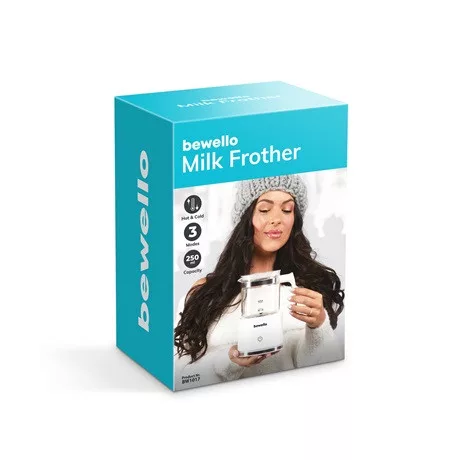 Amennyiben meleg tejhabot szeretne, öntsön friss tejet a tartályba, nyomja meg egyszer a gombot, hogy elindítsa a készüléket. Rövid időn belül habos és selymes meleg tejhabot kap, amellyel varázslatos latte-kat, kávékat és forró csokoládékat készíthet otthonában, vendégei és saját maga részére is. A könnyen tisztítható habosítófej hozzájárul a kiváló minőségű tejhab előállításához. A tartály nagy űrtartalommal és tapadásmentes felülettel rendelkezik, így a használat és a tisztítás is egyszerű. A készülék csendes működése pedig nem zavarja meg a ház nyugalmát, így élvezheti a csendes reggeleket vagy este a pihentető pillanatokat. Az otthoni kávézás szerelmeseinek elengedhetetlen kellék a Bewello termékcsalád legújabb tejhabosítója!