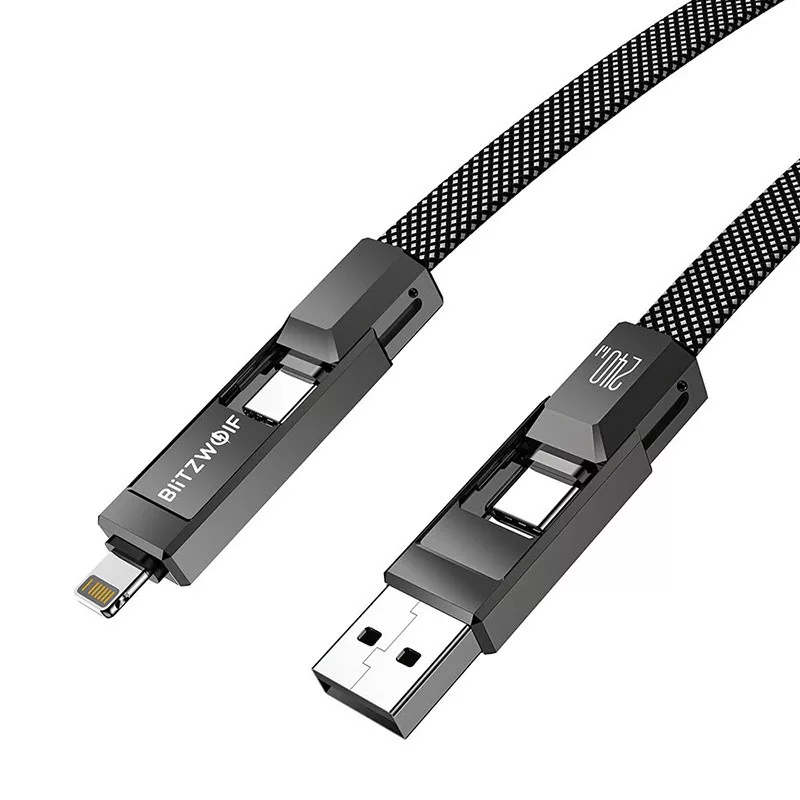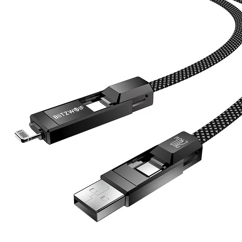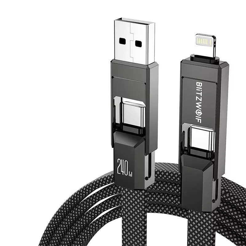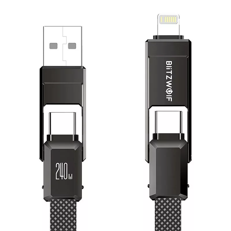 BlitzWolf BW-HDC7 4 az 1-ben USB-C+USB+Lightning kábel, 240W, 1.2m (fekete)