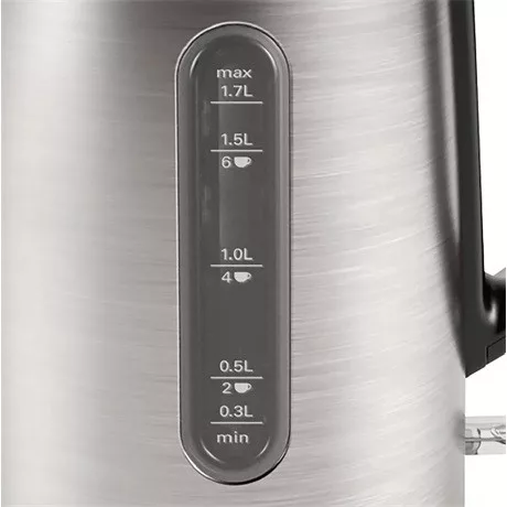 Élvezze a kényelmet, amikor a vízforralót pontosan annyi vízzel tölti meg, amennyire szüksége van. A vízforraló mindkét oldalán jól leolvasható vízskála látható – ideális bal- és jobbkezes felhasználók számára.