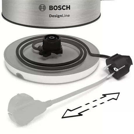 A kábelek helyet foglalnak el. A kábeltartó rekesz segítségével a vezetéket a kívánt hosszra állíthatja be. A kábelt teljesen el lehet rejteni a kábeltartó rekeszben, lehetővé téve a vízforraló egyszerű tárolását a szekrényben.