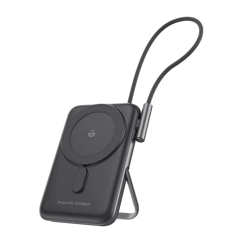 Choetech B735 mágneses powerbank 10000mAh 20W PD + USB-C kábel (fekete).