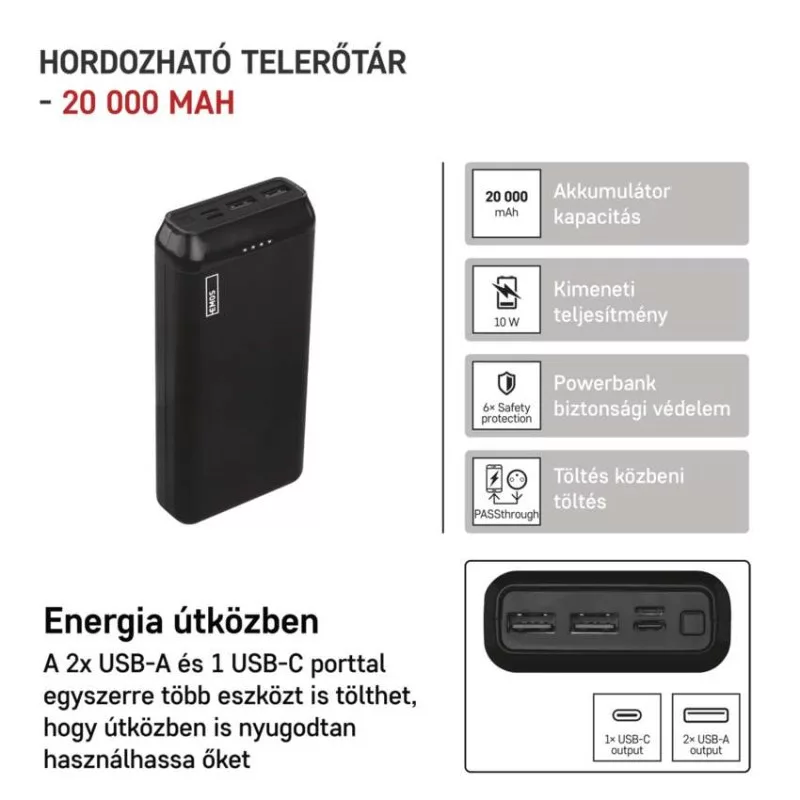 EMOS Powerbank ALPHA2 20, 20 000 mAh, 10 W, fekete