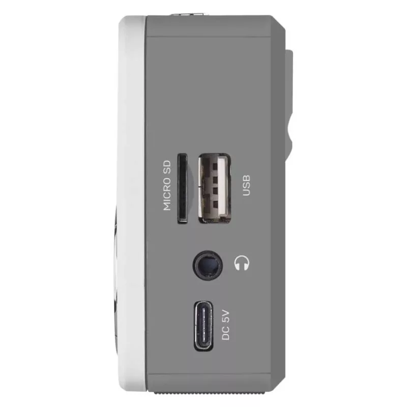 Hordozható multimédia-lejátszó FM-rádióval. FM-rádió digitális vevőegységgel a precíz hangoláshoz. Támogatja az mp3 fájlok lejátszását USB-flash tárolóeszközről és mikro-SD-kártyáról.