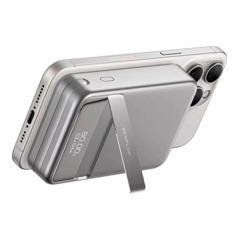Az EcoFlow termék támogatja a vezeték nélküli töltést is 15 W-os teljesítménnyel, ami lehetővé teszi a kábel nélküli gyors töltést. A Qi1.0 (5W) és Qi2.0 (15W) szabványokkal való kompatibilitás révén a powerbank a 13-as modelltől kezdve az Android készülékek és iPhone-ok vezeték nélküli energia-megújítására van szabva. Egy iPhone 15 50%-ra történő feltöltéséhez 44 perc elegendő.