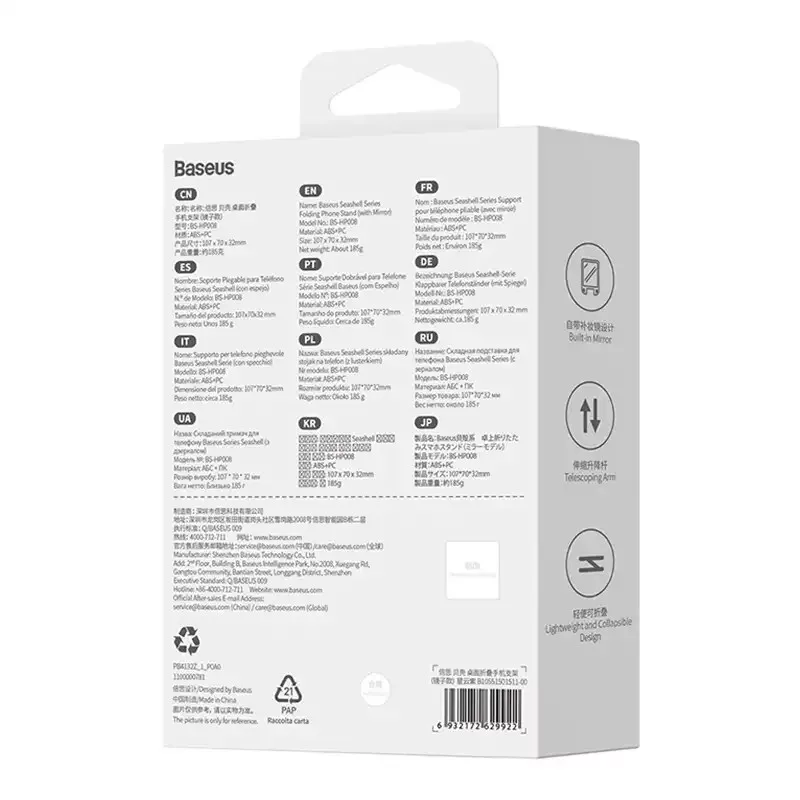 Munka, otthon, utazás - a Baseus tartó minden nap bizonyítja, hogy érdemes használni. Lehetővé teszi a magasság beállítását, és nem akadályozza a töltőportot, az átgondolt kialakítás pedig garantálja a stabilitást. Ráadásul könnyű és összecsukható - sikeresen elpakolhatja a táskájában vagy a hátizsákjában. Ezenkívül beépített tükörrel rendelkezik a még kényelmesebb használat érdekében.