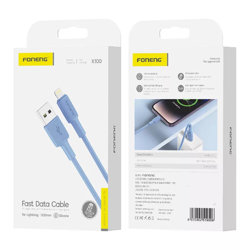 Az 1,2 m hosszú Foneng X100 kábel gyors és hatékony töltést biztosít készülékének. A 142 rézmaggal rendelkező kábel stabil és biztonságos áramellátást garantál, megvédve készülékét az esetleges sérülésektől. Fejlett chipekkel felszerelve automatikusan felismeri a csatlakoztatott eszközt, beállítva a megfelelő töltési teljesítményt. Ez nem csak gyorsabbá, de biztonságosabbá is teszi a töltést, ami hosszabb élettartamot eredményez a készüléke számára.