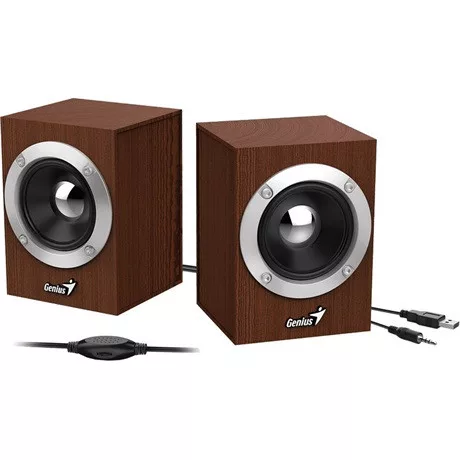 Cseresznyefa színű fa doboz, USB táp-csatlakozású, fadobozos hangszóró.