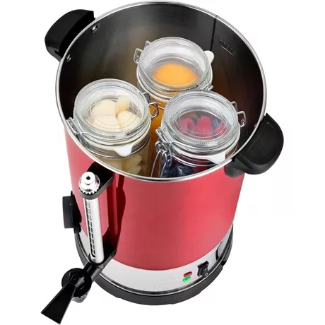 A TKG GW 910 IN forróital-adagoló ideális nagy mennyiségű kávé, tea, forró csokoládé vagy forralt bor melegítésére és/vagy melegen tartására. A 6,8 l-es űrtartalom több mint 25 csésze 250 ml-es vagy több mint 60 csésze 100 ml-re elegendő: ideális klubtalálkozóra, családi vagy sok baráti fogadásra, büfére, szakmai rendezvényre és még sok más alkalomra! Ez a sokoldalú eszköz használható üvegek és konzervek sterilizálására és tartósítására is, mint például lekvárok, ízek, tésztaszószok, gyümölcsök, zöldségek és a kertből származó hüvelyesek... És még sok más!