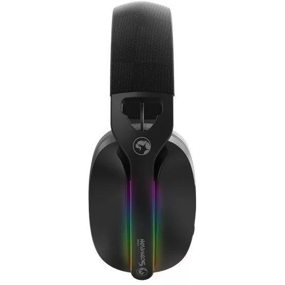 Marvo Pulz 70W vezeték nélküli gamer fejhallgató – Vezetékes/vezeték nélküli – Csatlakozás: USB-C + 2,4 GHz + Bluetooth 5.3 – Hangszóró: 40 mm – Mikrofon: 360° állítható – Akkumulátor: 800 mAh, 6 óra játékidő – Súly: 220 g – RGB háttérvilágítás