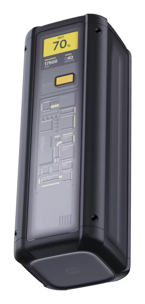 Xiaomi P03MI. Akkumulátor teljesítménye: 25000 mAh, Akkumulátor-technológia: Lítium-ion (Li-ion), Gyorstöltés technológia: Power Delivery, Feszültség: 3,63 V. USB A kimeneti portok: 1, C típusú USB portok mennyisége: 2. Teljes kimeneti teljesítmény: 212 W, Kimeneti áram: 3 A. Termék színe: Fekete