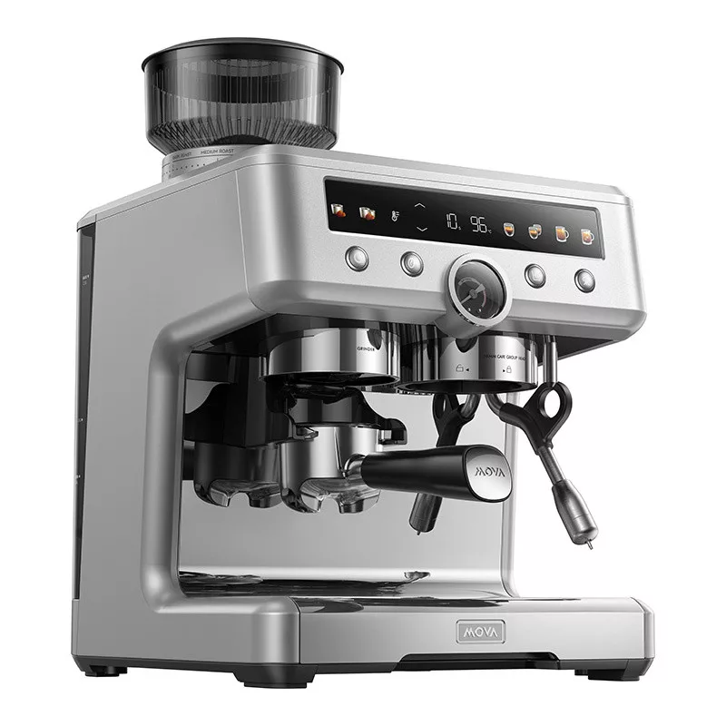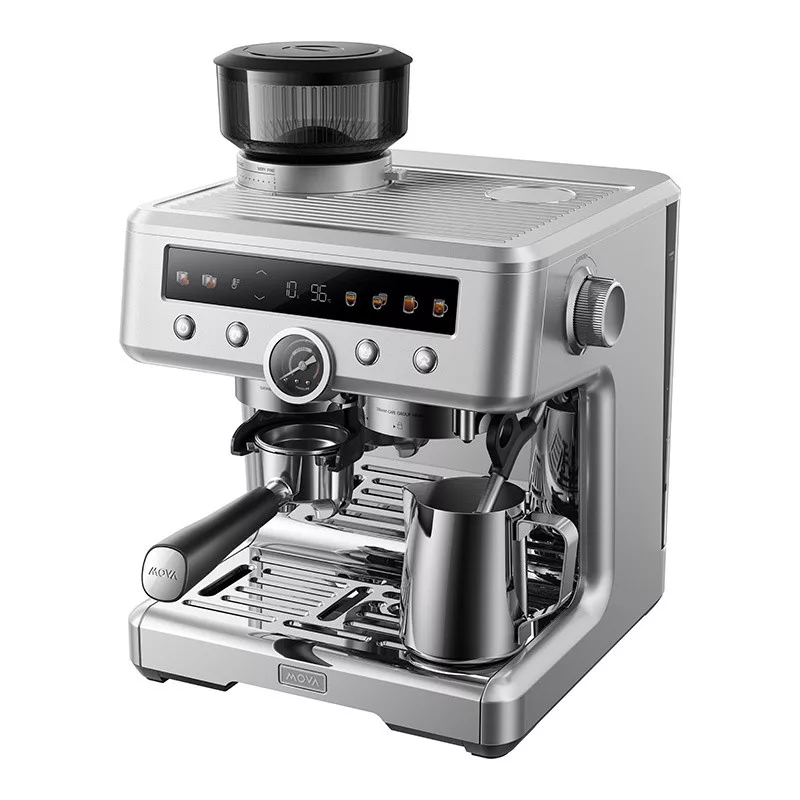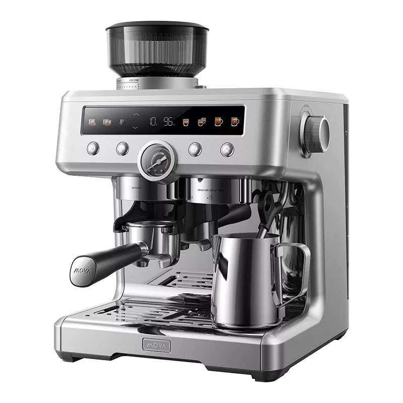 A MOVA S20 Pro egy eszpresszógép, amelyet azok számára hoztak létre, akik nagyszerű ízű kávét szeretnének élvezni anélkül, hogy elhagynák otthonukat. A készülék egyesíti magában a 34 fokozatú beállítással rendelkező kúpos őrlőt, a kettős kazán- és szivattyúrendszert, valamint a háromszoros tejhabosító rendszert. Ez lehetővé teszi a klasszikus eszpresszó és a krémes, tökéletes habbal rendelkező cappuccino elkészítését egyaránt. A 250 g-os, szilikon tömítéssel ellátott, szivárgásmentes babtartály megóvja a kávé frissességét és aromáját, míg az Anti-Static Grinding funkció megakadályozza, hogy az őrölt babok leragadjanak és kifolyjanak. A stabil főzési hőmérséklet, a 20 bar nyomás és a teljesen testreszabható paraméterek lehetővé teszik, hogy pontosan olyan főzetet kapjon, amilyet szeretne - aromás, intenzív és ízgazdag.