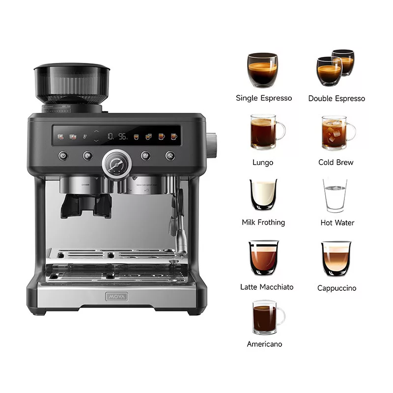 A MOVA S20 Pro készülékkel négy előre beállított program közül választhat: Espresso, Double Espresso, Lungo és Cold Brew. Mindegyik finomhangolással készült, hogy kihozza a teljes ízt és megőrizze a tökéletes arányokat. Emellett a kávéfőzési beállításokat teljes mértékben a saját preferenciáinak megfelelően alakíthatja: beállíthatja az őrlés méretét és idejét, az előfúziót 0-10 másodperc között, a 85-96°C-os kávéfőzési hőmérsékletet, valamint választhatja az automatikus vagy a kézi üzemmódot, és dönthet az egyadagos és a duplaadagos kávéfőzés között.