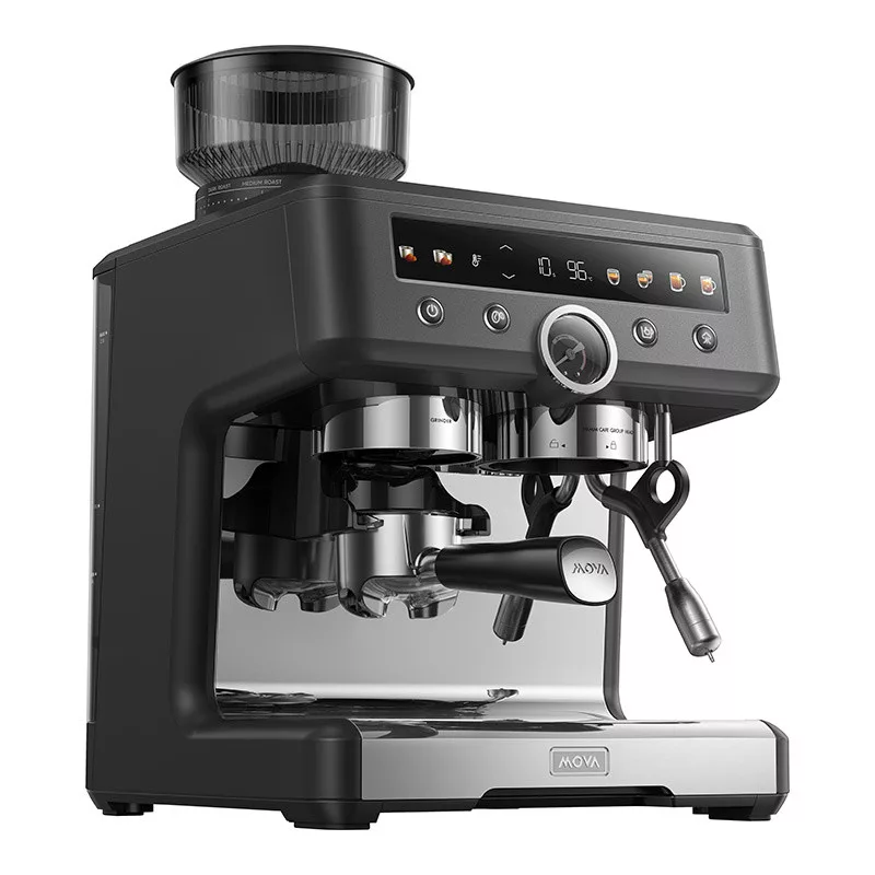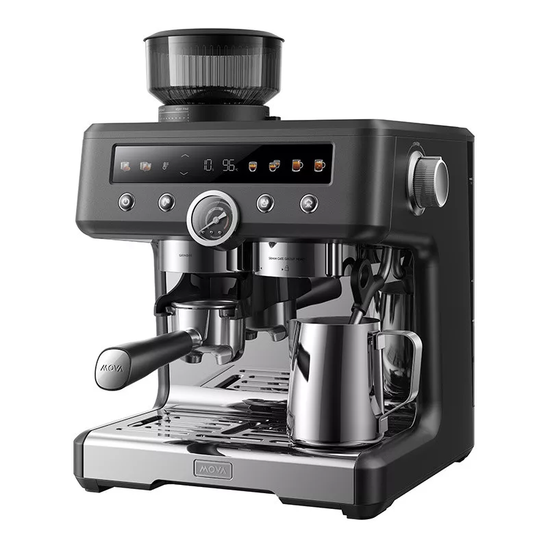 A MOVA S20 Pro egy eszpresszógép, amelyet azok számára hoztak létre, akik nagyszerű ízű kávét szeretnének élvezni anélkül, hogy elhagynák otthonukat. A készülék egyesíti magában a 34 fokozatú beállítással rendelkező kúpos őrlőt, a kettős kazán- és szivattyúrendszert, valamint a háromszoros tejhabosító rendszert. Ez lehetővé teszi a klasszikus eszpresszó és a krémes, tökéletes habbal rendelkező cappuccino elkészítését egyaránt. A 250 g-os, szilikon tömítéssel ellátott, szivárgásmentes babtartály megóvja a kávé frissességét és aromáját, míg az Anti-Static Grinding funkció megakadályozza, hogy az őrölt babok leragadjanak és kifolyjanak. A stabil főzési hőmérséklet, a 20 bar nyomás és a teljesen testreszabható paraméterek lehetővé teszik, hogy pontosan olyan főzetet kapjon, amilyet szeretne - aromás, intenzív és ízgazdag.