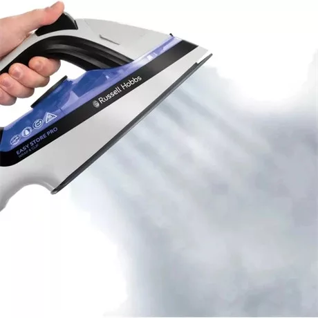 A Russell Hobbs Easy Store Pro Wrap & Clip vasalót nem csak azok számára tervezték, akiknél halomban áll a vasalatlan ruha, hanem azok számára is, akik számára fontos a helytakarékosság és korlátozott tárolási lehetőségekkel rendelkeznek. A kábelt egyszerűen körbetekerheti a vasaló alján, majd biztonságosan a helyére lehet csíptetni, hogy az ne lógjon ki. Ha gyűrődésről van szó, 2400 W-os teljesítményével lenyűgöző eredményt biztosít. Az erőteljes, 180 g-os gőz felveszi a harcot a ráncokkal, míg a 45 g-os folyamatos gőz tökéletesen kisimítja a gyűrődéseket. Az Easy Store Pro Wrap & Clip vasaló tartós kerámia vasalótalpával, amely könnyedén siklik a szöveteken, és mindössze 30 másodperces gyors felmelegedésével bármikor készen áll a használatra.