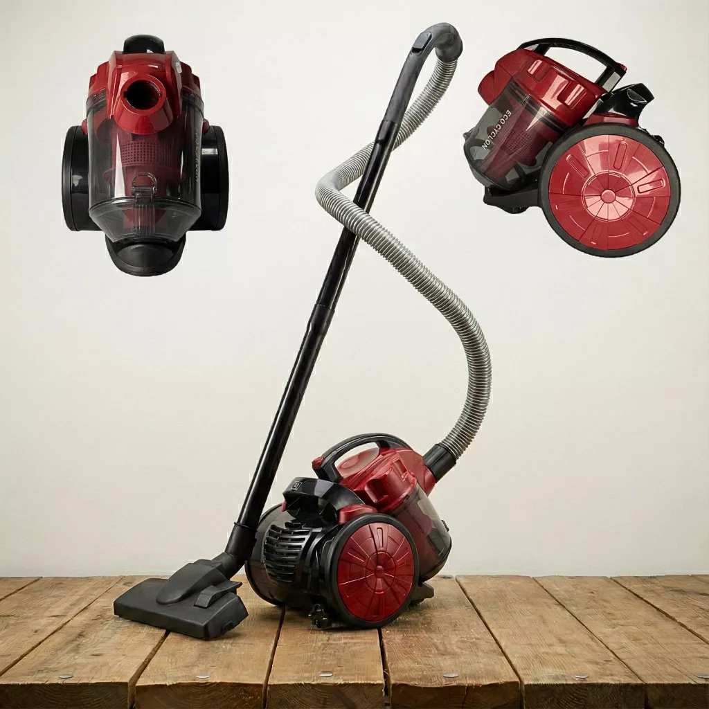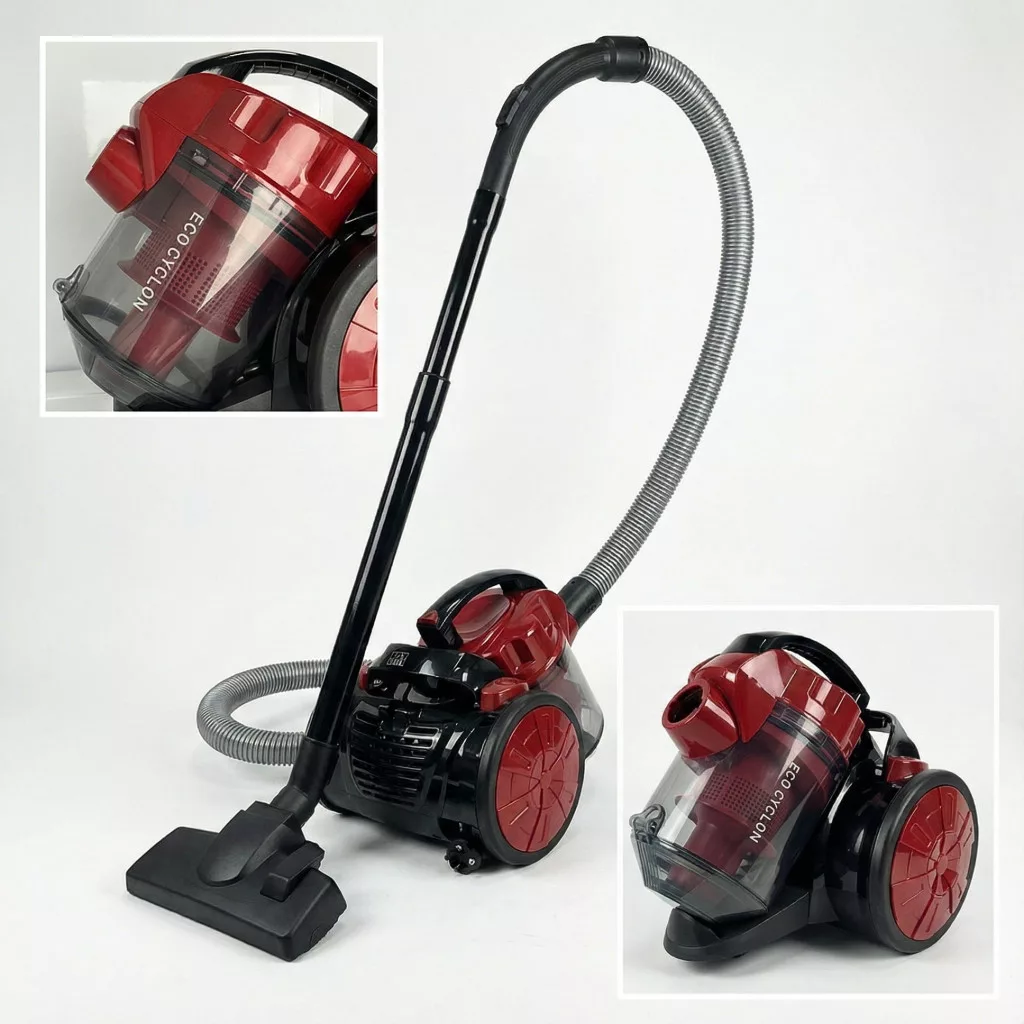 Motor: 220V, 50-60 Hz,700W - nagy hatékonyságú Piros-fekete szín Tápkábel hossza: 4 m Portartály kapacitása: 1,8 L Automata kábel visszatekerés Sebességszabályzás nélkül Bemeneti szivacs szűrő, kimeneti HEPA szűrő Tartozékok: 2 db 40 cm hosszú műanyag porszívócső, 1 flexibilis cső, 1 kefés padlótisztító porszívó fej, 1 db kis réstisztító, kefés fej Termék mérete: 330 x 230 x 260 mm Csomagolás mérete: 375 x 275 x 255 mm Padlóporszívó Nagy teljesítményű motorral