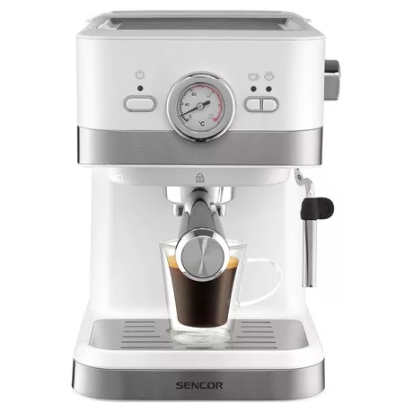 A Sencor SES 1720WH karos presszó kávéfőző géppel könnyedén készítheted el a kedvenc eszpresszódat. A 20 bar nyomás garantálja az ízletes és intenzív kávéélményt. Az elforgatható rozsdamentes gőzfúvóka lehetővé teszi a krémes cappuccino és latte készítését. Emellett a készülék forró víz funkciójával akár americano vagy tea is elkészíthető. A kivehető 1,5 literes víztartály vízmennyiség jelzővel rendelkezik, így mindig pontosan tudod, hogy mikor kell feltölteni. A digitális vezérlés a pontosabb működést hivatott biztosítani.