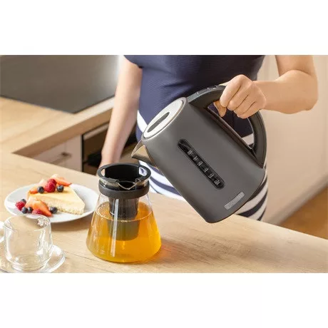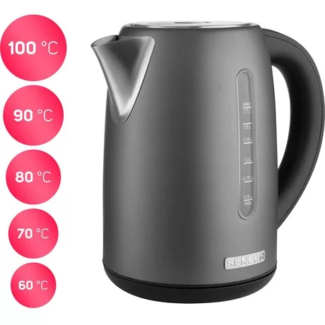 A Sencor SWK 7708BK stílusos és praktikus elektromos vízforraló. A maximális kapacitása 1,7 liter és az anyagát tekintve kiváló minőségű rozsdamentes acél. A vízforraló 2150 W teljesítményének köszönhetően gyorsan felmelegíti a vizet. A tökéletes ízélmény elérését az elektronikus hőmérséklet-szabályozó (60–100 °C) segíti. Az elkészült forró ital még 120 percen keresztül meleg marad, köszönhetően a hőmérsékleten tartó funkciónak. A hármas biztonsági rendszernek köszönhetően a vízforraló védve van a túlmelegedés ellen víz nélküli bekapcsolás esetén, ugyanígy automatikusan kikapcsol, ha levesszük a talpról, valamint ha eléri a forráspontot.