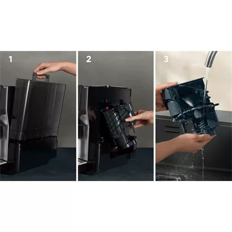 - Mosogatógép-biztos tartozékok: Csepptálca, Kávébab tartály fedél, Tejtartó, Tejfúvóka, Tejcső, Trester container, Csepptálca, Víztartály fedél, Víztartály fedél