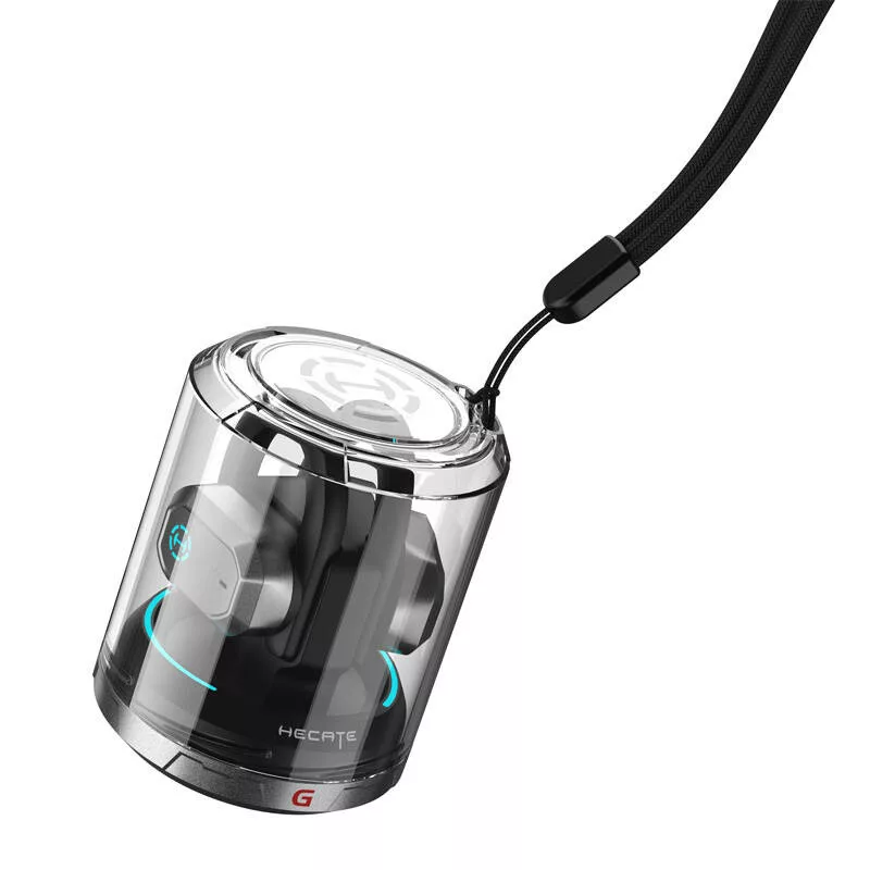 Érezze a merülés mélységét az Edifier HECATE Air 2. A fejhallgató ergonomikus, nyitott kialakítású, és a dinamikus 14,2 mm-es meghajtóknak köszönhetően kiváló hangminőséggel rendelkezik. A zajszűrő funkció lehetővé teszi, hogy a külső zajoktól való félelem nélkül telefonálhasson. Ráadásul a töltő tokkal akár 18 órán át is bírják, az RGB háttérvilágítással ellátott átlátszó tok pedig egyedi jelleget kölcsönöz a HECATE Air 2 fülhallgatónak. A háttérvilágítást kikapcsolhatod, vagy választhatsz a rendelkezésre álló effektusok közül, a speciális pánt segítségével pedig a tokot a hátizsákodra vagy a táskádra is felcsatolhatod.