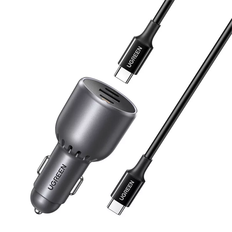 UGREEN EC705 autós töltő, USB + 2x USB-C, 130W + 1m 5A kábel