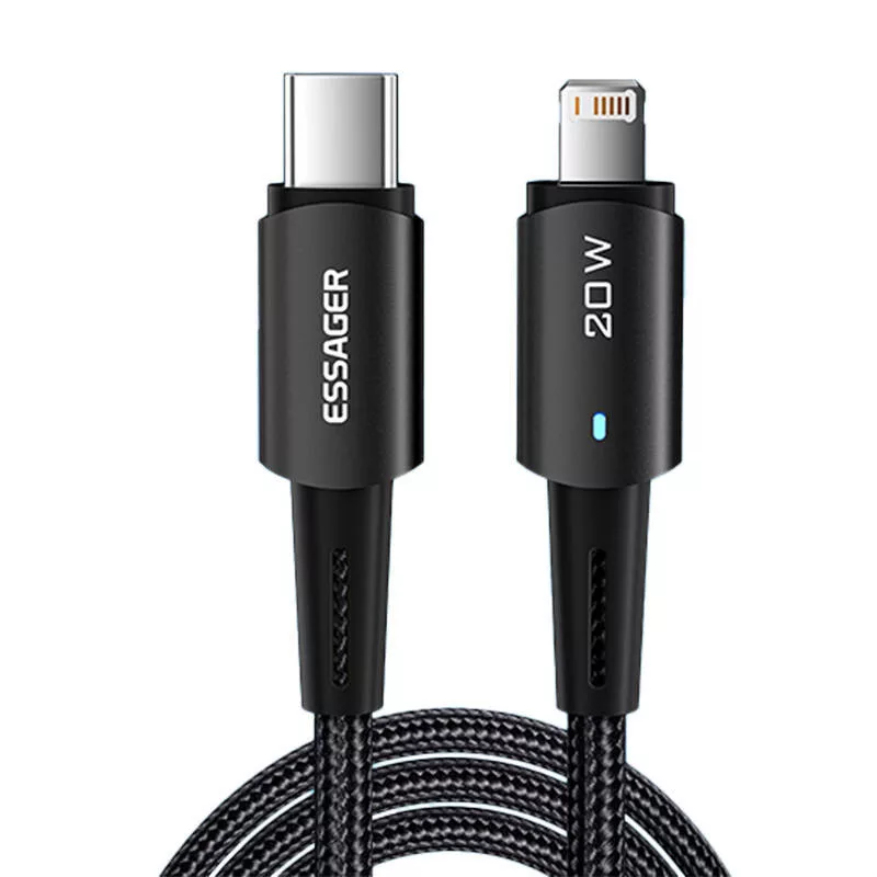 Az Essager USB-C és Lightning kábel biztonságos és stabil töltést biztosít 27W maximális teljesítmény mellett. A fájlok átvitelére 480Mbps sebességgel van lehetőség. A praktikus LED kijelző tájékoztat a töltési folyamatról és megkönnyíti a csatlakoztatott eszköz helyének megtalálását éjszaka.
