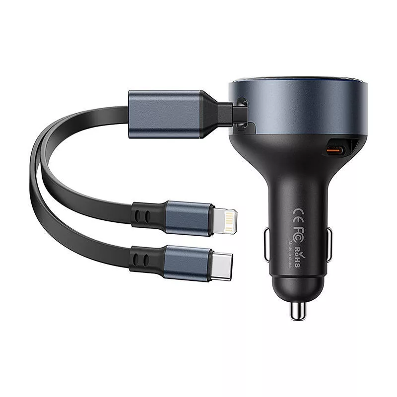 A Vention töltő sokoldalú megoldás három eszköz egyidejű gyors töltésére, ideális 12-24V-os autókhoz. A beépített USB-C és Lightning kábelekkel és egy további USB-C porttal nagyfokú sokoldalúságot biztosít, és kiküszöböli az összegabalyodott vezetékek okozta zűrzavart.