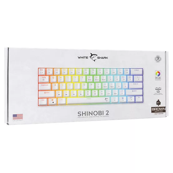 megnevezés White Shark SHINOBI-2/W-BR-US fehér mechanikus gamer hot swap billentyűzet, barna kapcsolók (angol)