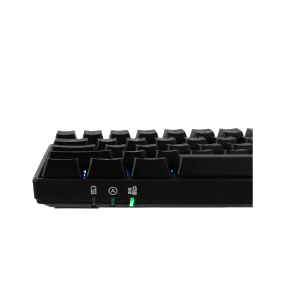 Angol kiosztású billentyűzet, Kapcsolók típusa: mechanikus, Kapcsolók színe: piros, Kapcsolók száma: 63, Világítás: RGB állítható fényeffektek, Csatlakozás: USB - BT - 2.4GHz, Kábelhossz: 1.5m, Színe: fekete