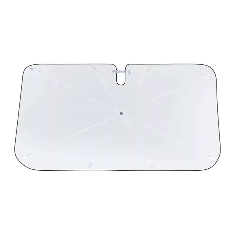 Az esernyő speciális kivágással rendelkezik a visszapillantó tükör számára, a termék gyártásához használt anyag pedig környezetbarát, nem mérgező és szagtalan. A PET műanyagból készült esernyő ellenáll a tartós napfénynek való kitettségnek. Ezenkívül rendelkezik EU RoHs tanúsítvánnyal, ami megerősíti, hogy megfelel a környezetvédelmi előírásoknak. Az esernyő fogantyúján egy zsinór található az egyszerű és kényelmes hordozás érdekében.
