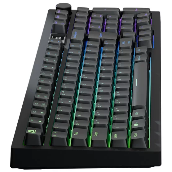 Magyar kiosztású billentyűzet, Kapcsolók típusa: mechanikus, Kapcsolók száma: 97, Gateron switchek színe: piros, Világítás: RGB fényeffektek, Csatlakozás: tri-mode, Kábelhossz: 1.8m, Színe: fekete
