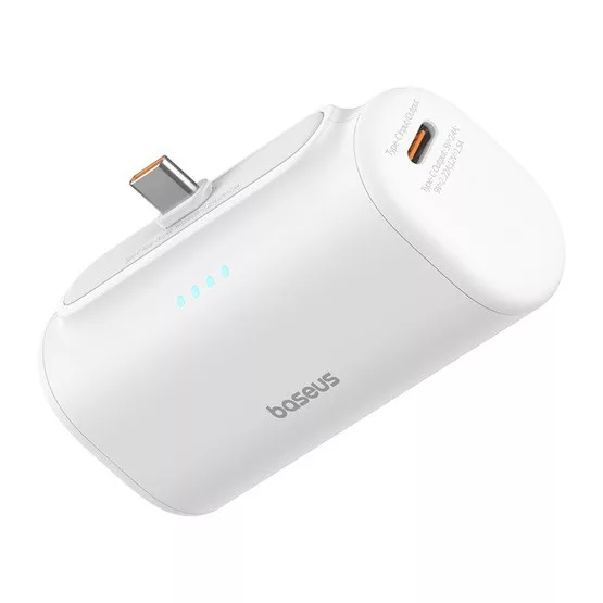 A Baseus Compact 20 W powerbank egy kompakt, nagy teljesítményű vésztöltő beépített USB Type-C dugóval. A 5000 mAh kapacitású akkumulátor lehetővé teszi a készülékek gyors és biztonságos töltését útközben is. Kompakt méretének köszönhetően hordozható, így ideális választás azok számára, akik készülékeiket szeretnék tölteni.