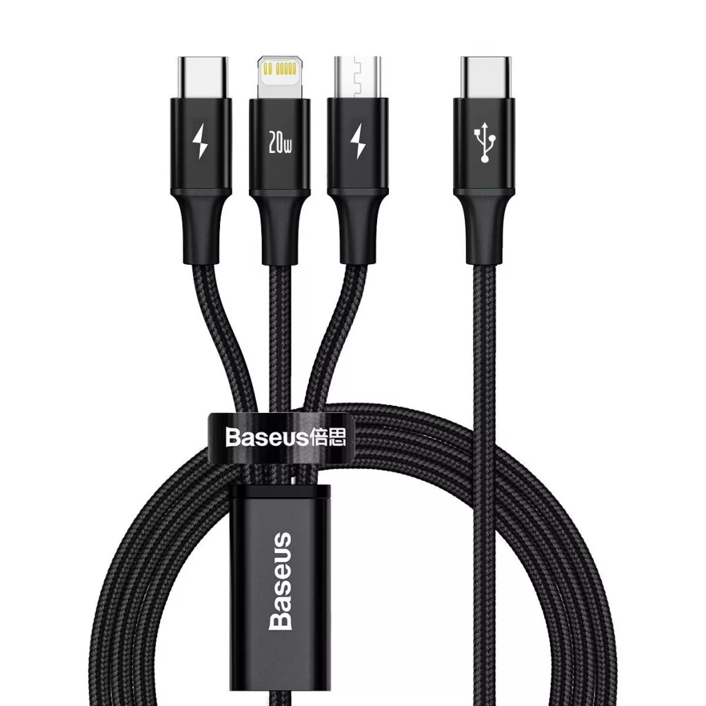 Nem kell többé arra várnia, hogy az egyik eszköz befejezze a töltést, hogy csatlakoztathasson egy másikat. A Baseus 3 az 1-ben kábel egyszerre akár 3 készüléket is képes feltölteni. Kényelmesen töltheti iPhone, Xiaomi vagy más USB-C bemenettel rendelkező okostelefonját, valamint micro-USB porttal rendelkező powerbankot vagy kis lámpát - a konfigurációk szinte korlátlanok. Ez a praktikus kiegészítő kényelmet nyújt Önnek és időt takarít meg.