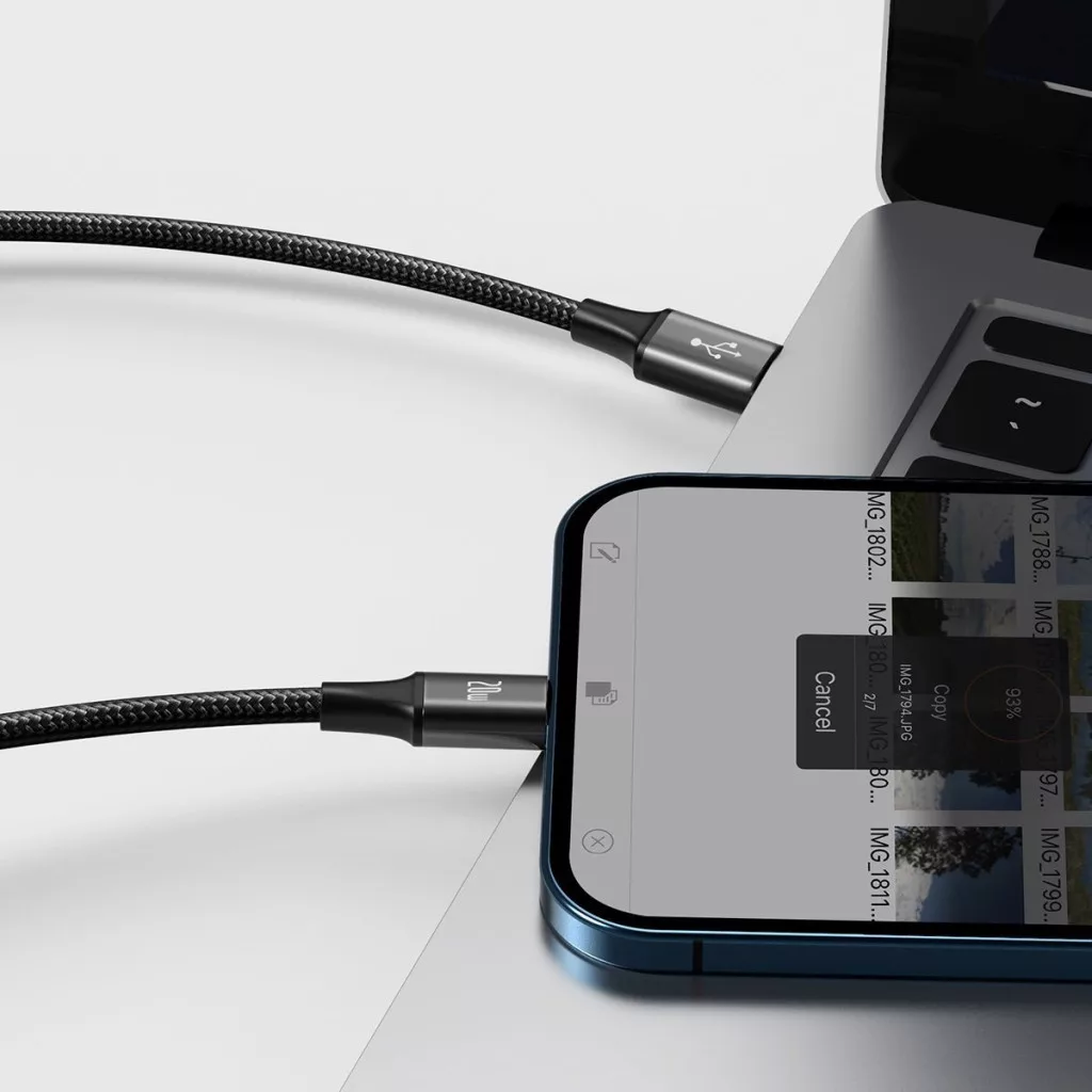 A kábellel pillanatok alatt fájlokat is átvihet az eszközök között. A termék által kínált adatátviteli sebesség akár 480 MB/s is lehet. Ennek köszönhetően pillanatok alatt átmásolhat fényképeket vagy videókat a telefonjáról a számítógépére. Többé nem kell órákat várnia, amíg a fájlok átvitelre kerülnek - a Baseus kábellel ez csak néhány pillanatot vesz igénybe.