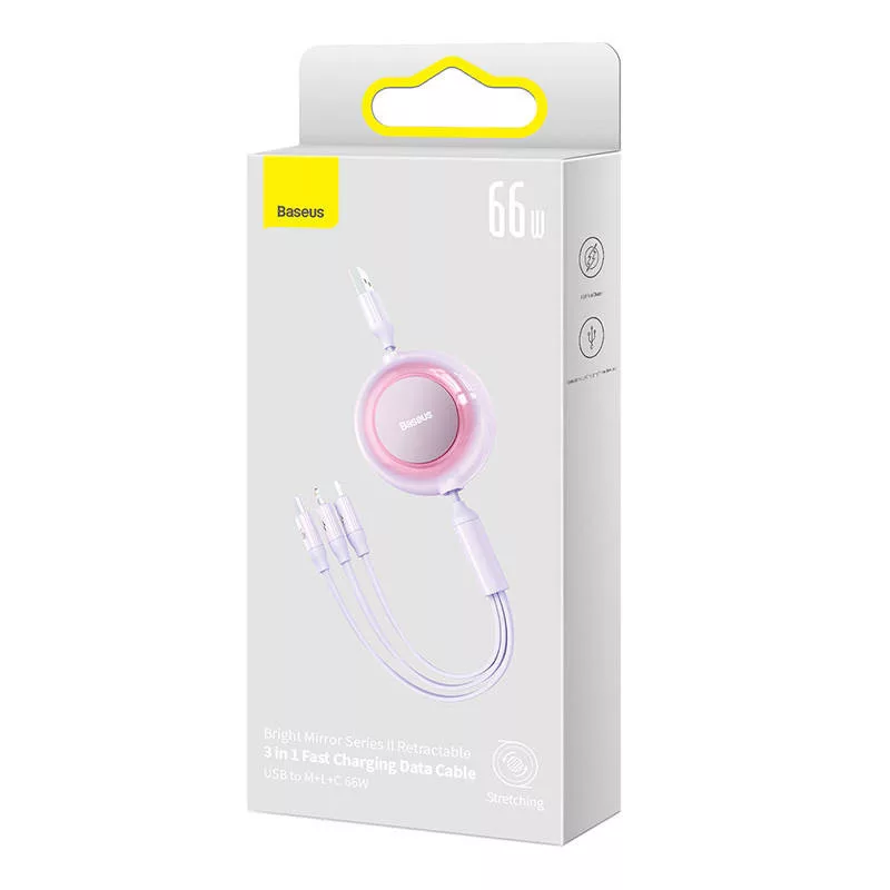 Baseus Bright Mirror 3 az 1-ben USB kábel, mikro USB / Lightning / USB-C, 66W / 2A, 1,1m (lila)
