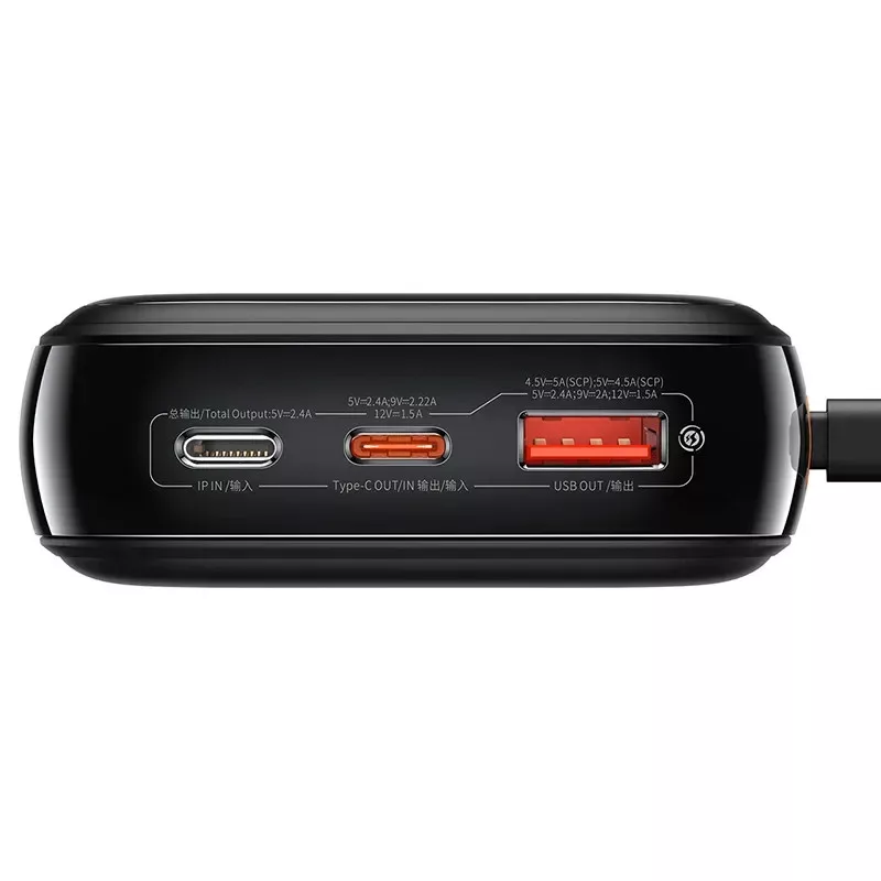 A beépített Lightning kábellel ellátott Baseus Qpow Pro powerbank USB-C és USB portokkal rendelkezik, így akár 3 eszközt is tud egyszerre tölteni. Támogatja az SCP, FCP, QC és PD gyorstöltési protokollokat is, és mindössze 30 perc alatt tölti fel az Apple 13-50%-át.