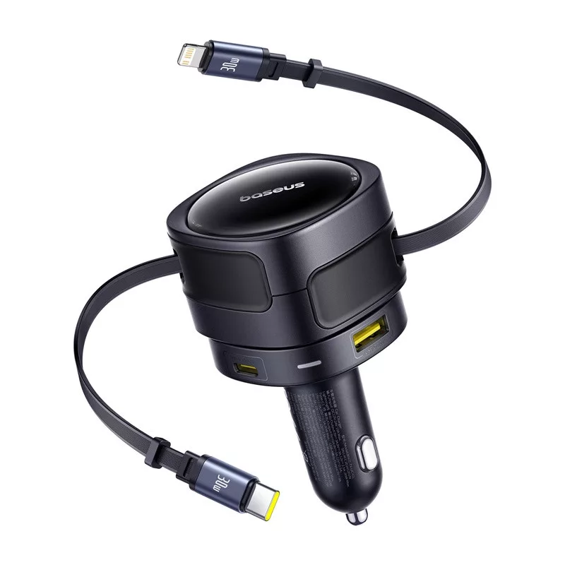 A Baseus autós töltő két beépített kábellel (USB-C és Lightning) és két további porttal (USB-C és USB-A) lehetővé teszi, hogy egyszerre akár négy eszközt is töltsön, akár 90 watt összteljesítménnyel. A beépített biztonsági rendszer, a forgatható kialakítás és a 12-24 voltos kompatibilitás minden járműben biztosítja a megbízhatóságot.