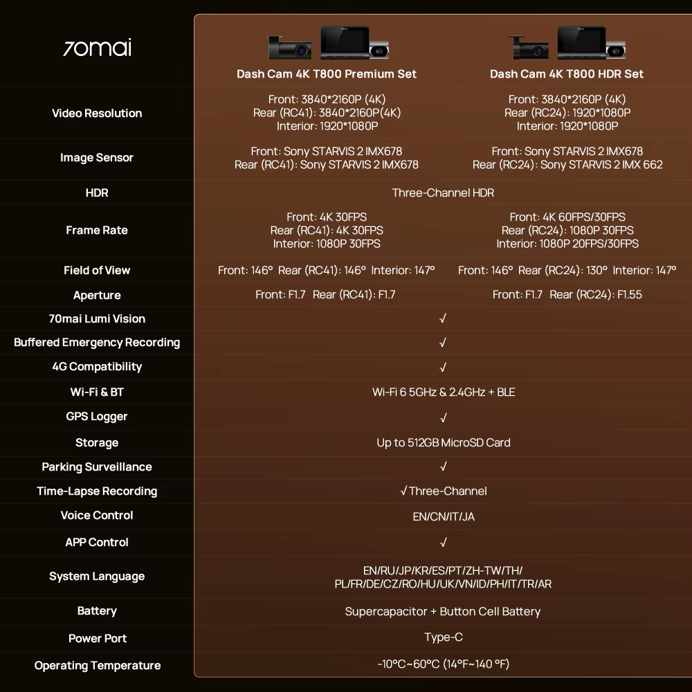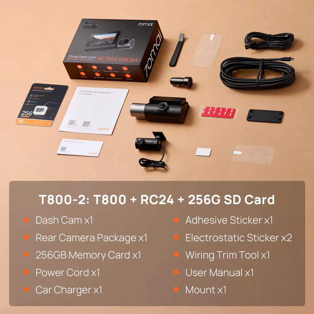 70mai Dash Cam 4K T800 HDR Set menetrögzítő kamera + hátsó kamera szett